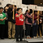 兵庫のみんなであつまって、分担を決めたりして、リハーサルをしてみんなで練習をしました。横断幕をみんなでつくりました。たいへんでした。みんなつかれていました。がんばろうと言っていました。
