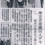 ◆障害者春闘デモ行進 集会の後に催されたデモ行進で、私たちは「住み慣れた街で暮らしたい!」などのプラカードを掲げ、障害者の差別撤廃と社会参加の促進を道行く人たちに訴えかけました。約70名(事務局発表)が、障害者の雇用促進・・・
