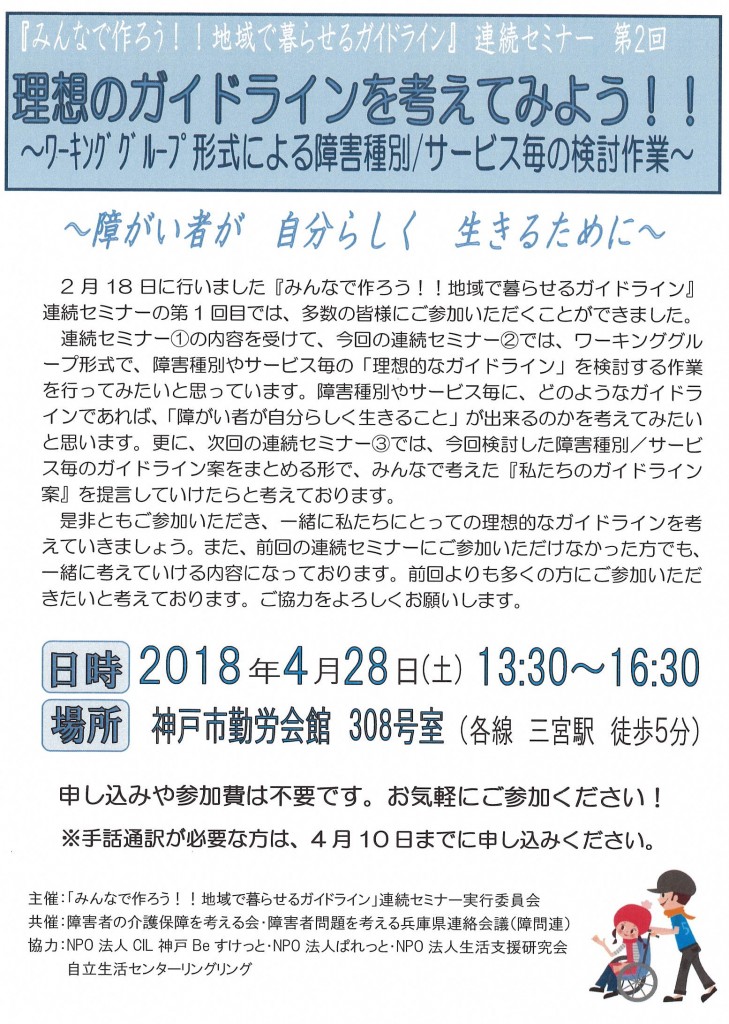 【報道/案内】 「みんなで作ろう!!地域で暮らせるガイドライン」連続セミナー