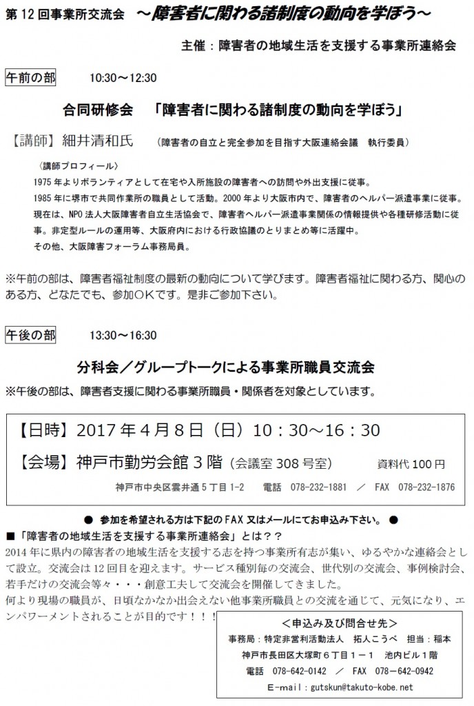 【案内】 第12回事業所交流会 ~障害者に関わる諸制度の動向を学ぼう~